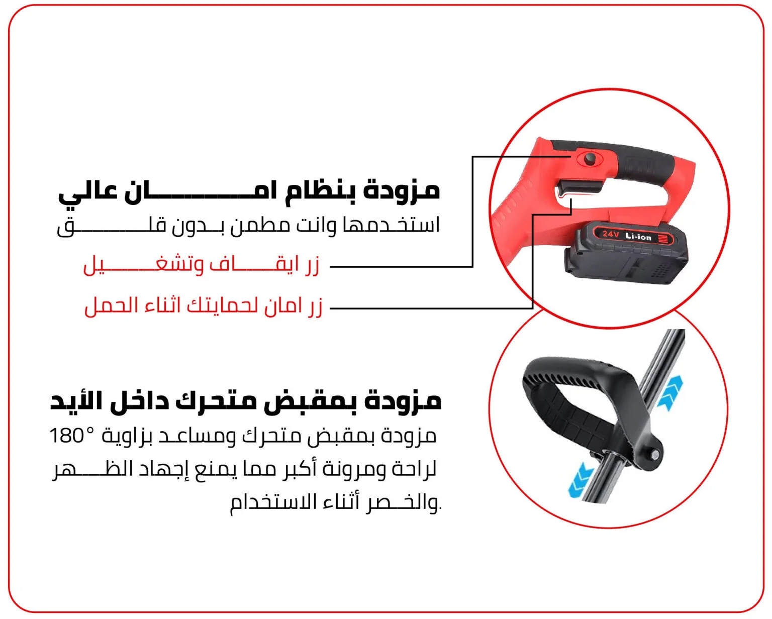 مزودة بمقبض متحرك ومساعد بزاوية 180° لراحة ومرونة أكبر، مما يمنع إجهاد الظهر والخصر أثناء الاستخدام.